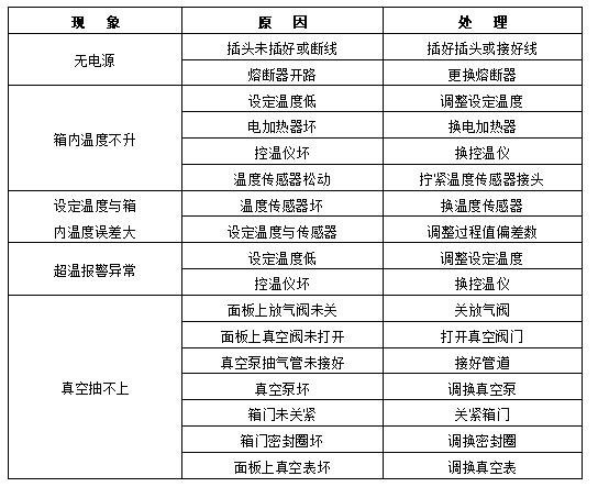 真空干燥箱設(shè)備故障現(xiàn)象及故障分析及解決方案: